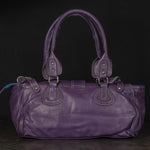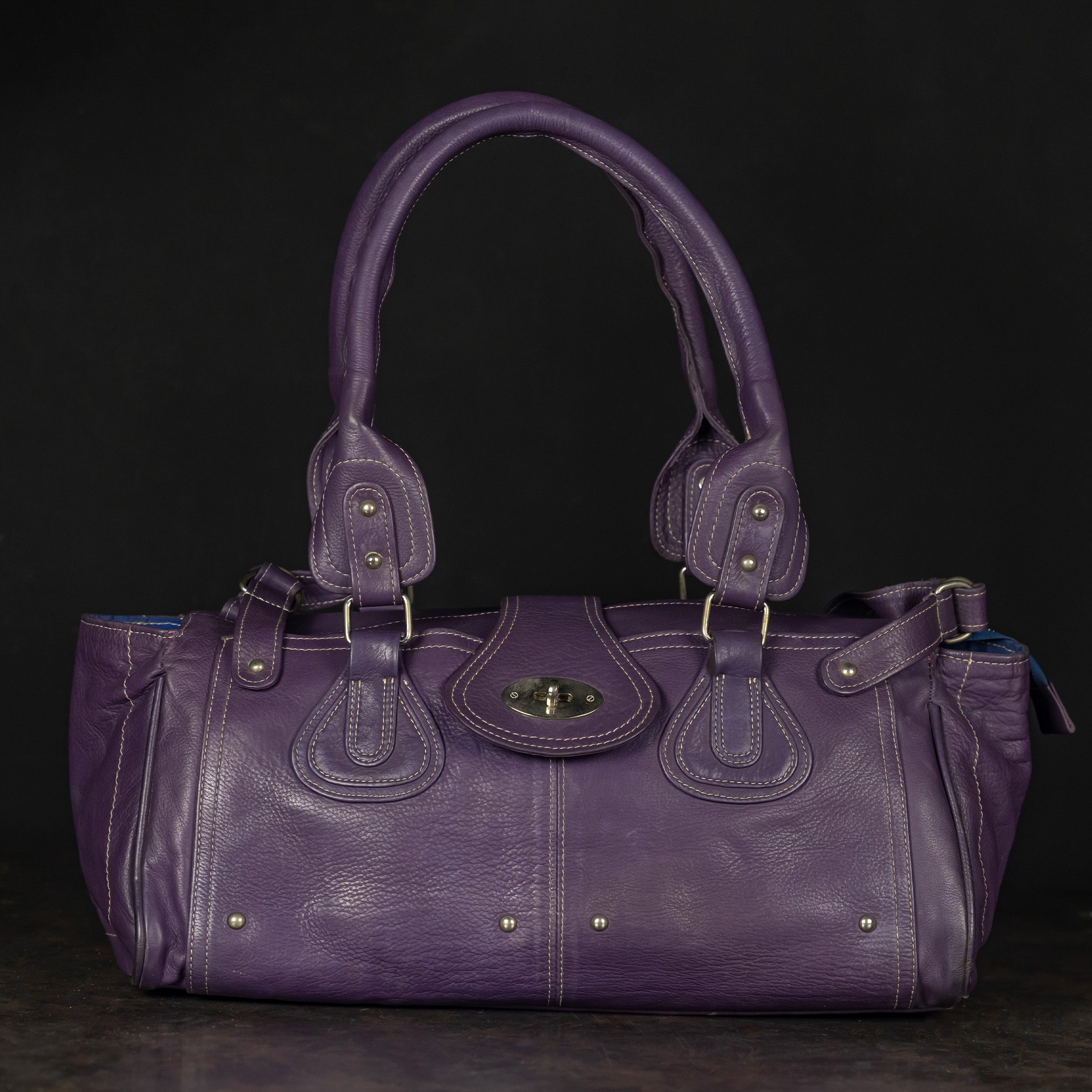 Purple Pebbled Leather Handbag with Contrast Stitching