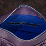 Elevate your daily ensemble with this exquisite purple leather satchel. Merging classic craftsmanship with a bold, contemporary edge, it features a vibrant cobalt blue interior that surprises every time you open it. Whether you're heading to a gallery opening or a weekend brunch, this bag is designed to turn heads.